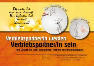 Als begeisterter Kunde der IAW wollen wir Sie an Ihrer Weiterempfehlung und Verkauf unserer Produkte beteiligen. Wie intensiv Sie diese Kooperation gestalten wollen, liegt ganz an Ihren Möglichkeiten: von sporadischen Empfehlungen über den systematischen Aufbau einer eigenen Kundschaft (Nutzung Ihres bestehenden Klientels) bis hin zum nebenberuflichen Erwerb als Partner der IAW oder professionellen Produktpartner.